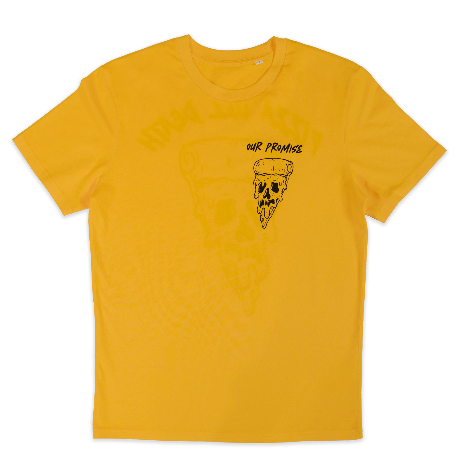 Front: Our Promise lettering and Pizza Till Death design on the chest in black